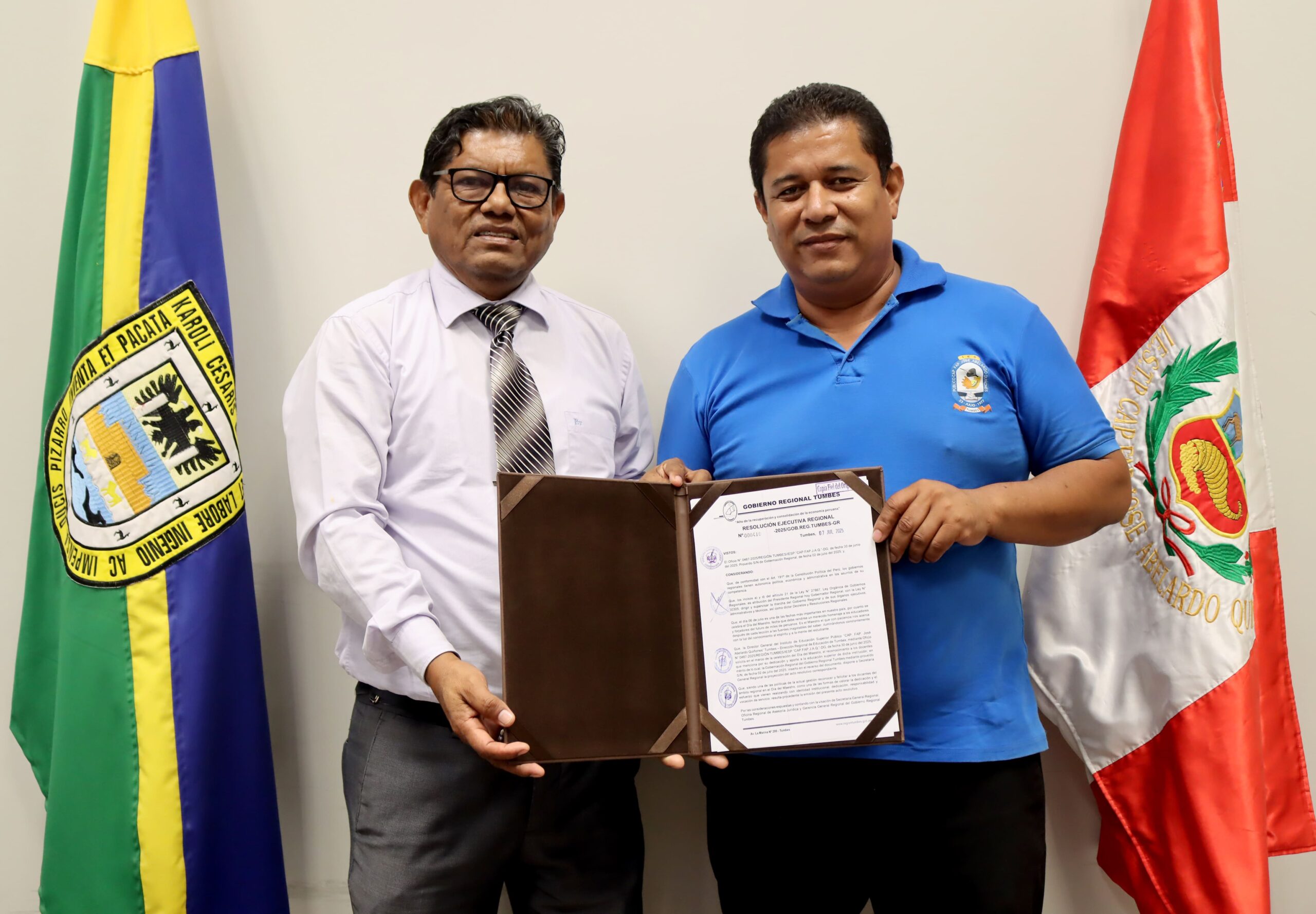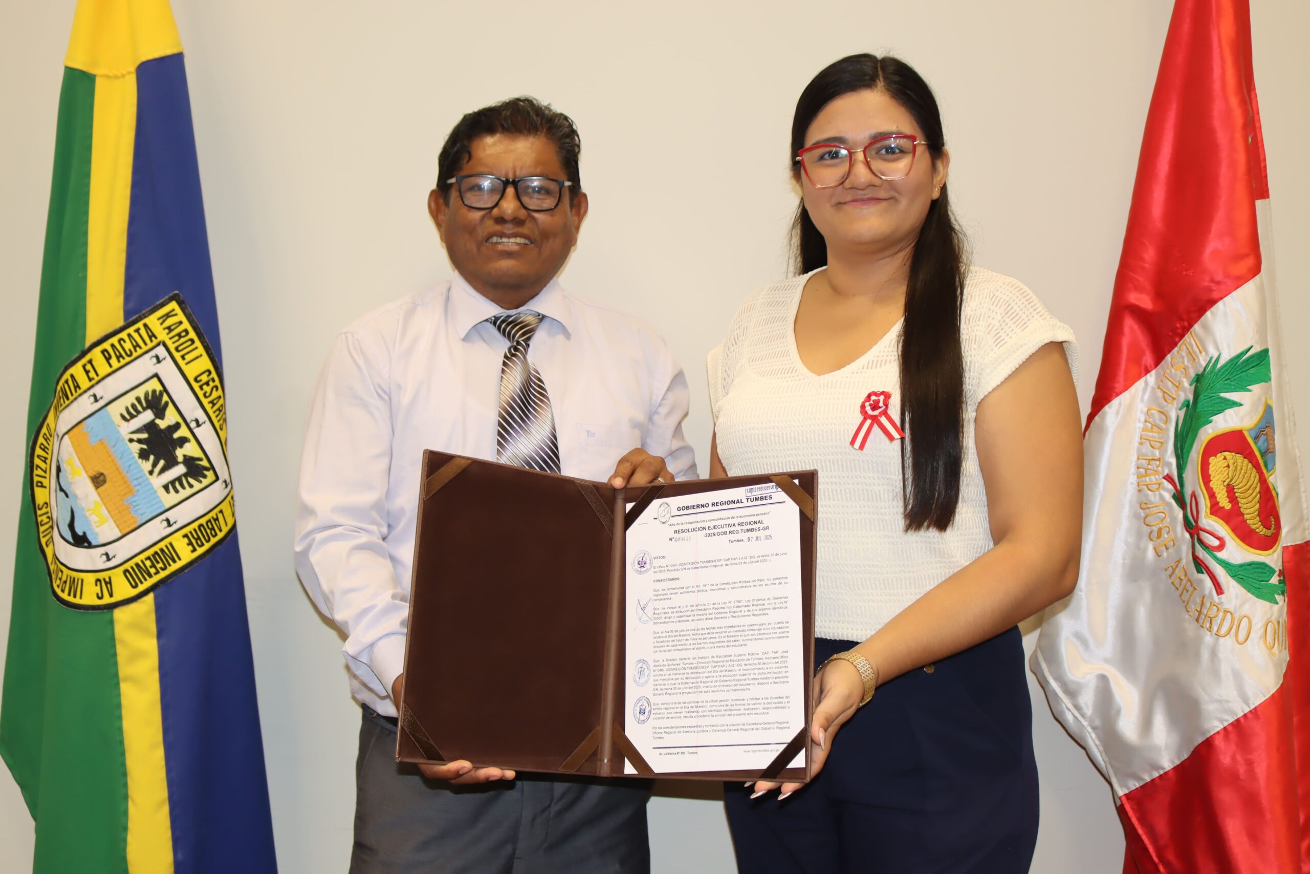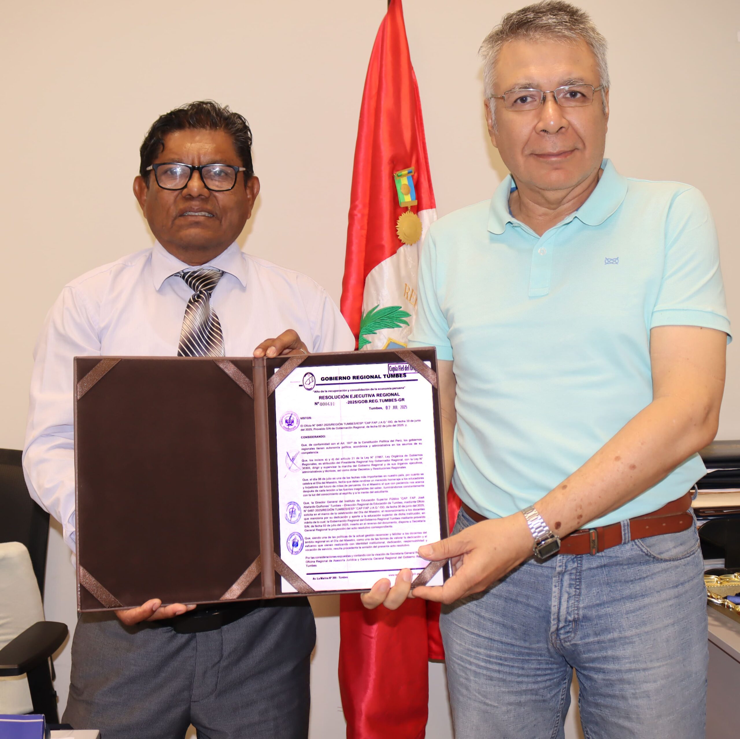 🎓 Con motivo de la celebración del Día del Maestro, el Gobernador Regional de Tumbes, Ing. Segismundo Cruces Ordinola, emitió la Resolución Ejecutiva Regional N.º 000410-2025/GOB.REG.TUMBES-GR, mediante la cual se reconoce y felicita a los docentes de nuestro prestigioso instituto, por su vocación de servicio, compromiso institucional, responsabilidad y valiosa contribución al desarrollo educativo de nuestra región. 📚✨